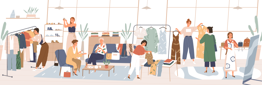 – kauft Kleidung second-hand (nicht immer fair produziert, doch trotzdem nachhaltig) dabei gibt es oft sehr gut erhaltene Kleidung, die viel zu gut ist um im Müll zu landen